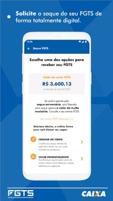 محنت کش بھائیوں اور بہنوں کے لیے خصوصی طور پر تیار کردہ یہ سروس آپ کے FGTS (Fund for the Guarantee of Time of Service) کا انتظام انتہائی آسان بناتی ہے۔ اب آپ اپنے FGTS کھاتوں کا مکمل بیلنس باآسانی دیکھ سکتے ہیں، آجر کی جانب سے کی گئی تمام جمع پونجی کی تصدیق کر سکتے ہیں، اور جب چاہیں اپنے بیانات (statements) پرنٹ کر سکتے ہیں۔ اس کے علاوہ، اگر آپ چاہیں تو "سالگرہ کی نکاسی" (Saque-aniversário) کے اختیار کو بھی منتخب کر سکتے ہیں، جو آپ کو ہر سال اپنی سالگرہ پر فنڈز نکالنے کی سہولت فراہم کرتا ہے۔ یہ آپ کو اپنے مالی معاملات پر مکمل کنٹرول دیتا ہے، تاکہ آپ ذہنی سکون کے ساتھ اپنے مستقبل کی منصوبہ بندی کر سکیں۔