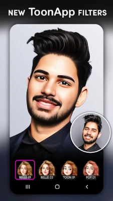 ToonApp Cartoon photo editor آپ کی تصاویر کو کارٹون، کیریکیچر اور اینیمی آرٹ میں بدلنے کے لیے ایک بہترین ایپ ہے۔ ایک کلک میں اپنی پروفائل تصویریں کارٹون بنائیں، دلکش فلٹرز اور فنّی اثرات شامل کریں۔ یہ آپ کی سیلفیز کو منفرد بنانے کا بہترین طریقہ ہے۔